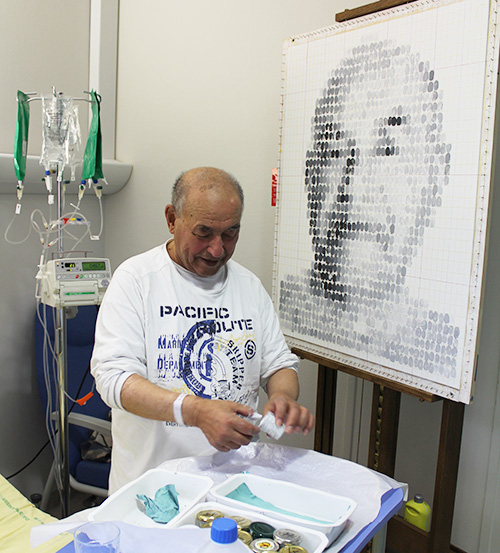 Olivier réalise une oeuvre miroir avec le personnel soignant avec l’envie de donner de la profondeur au projet " Empreintes de vie " à travers l’expérience du corps médical et des employés.